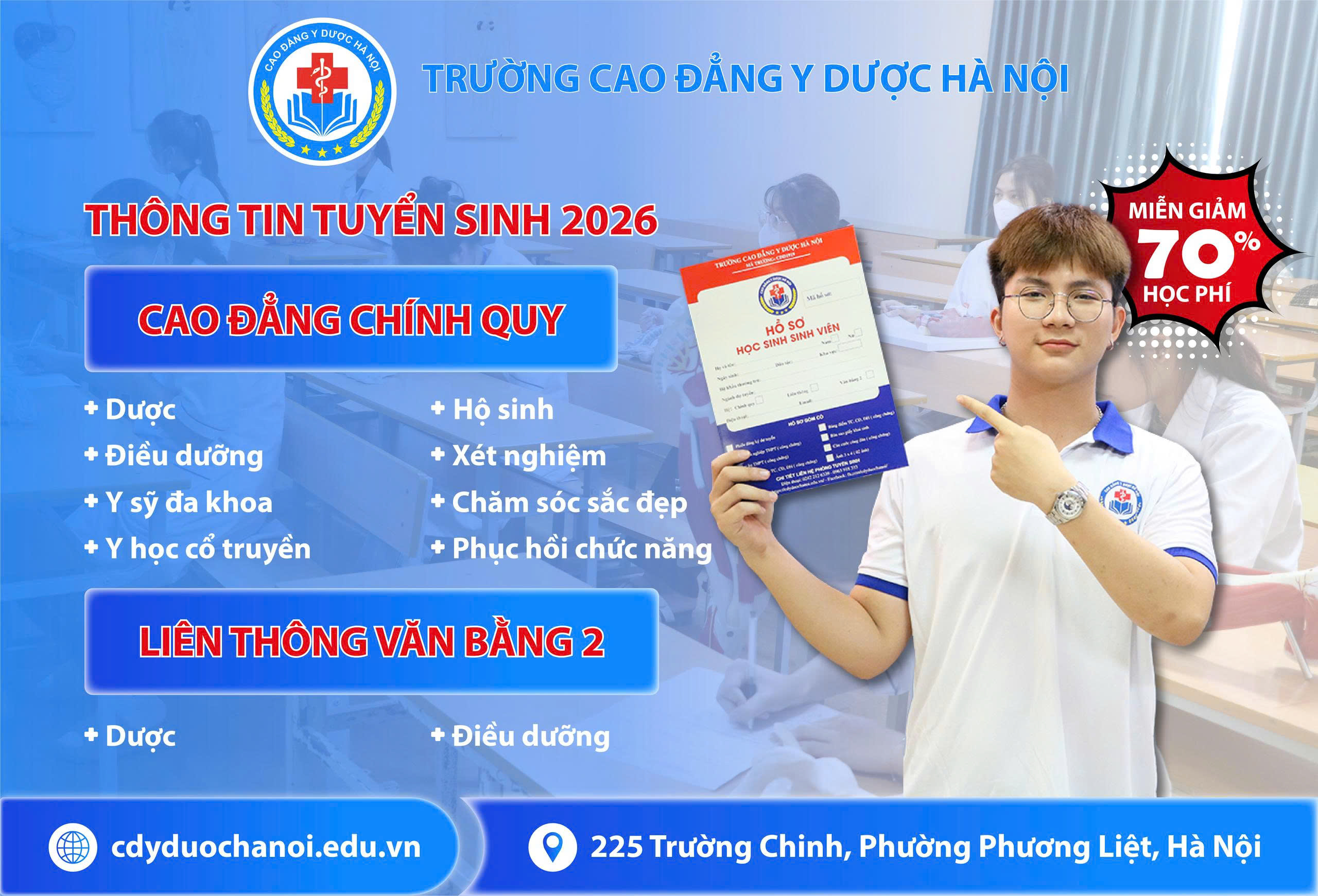 Năm học 2026, trường Cao đẳng Y Dược Hà Nội thực hiện tuyển sinh hệ cao đẳng chính quy với 8 mã ngành đào tạo: