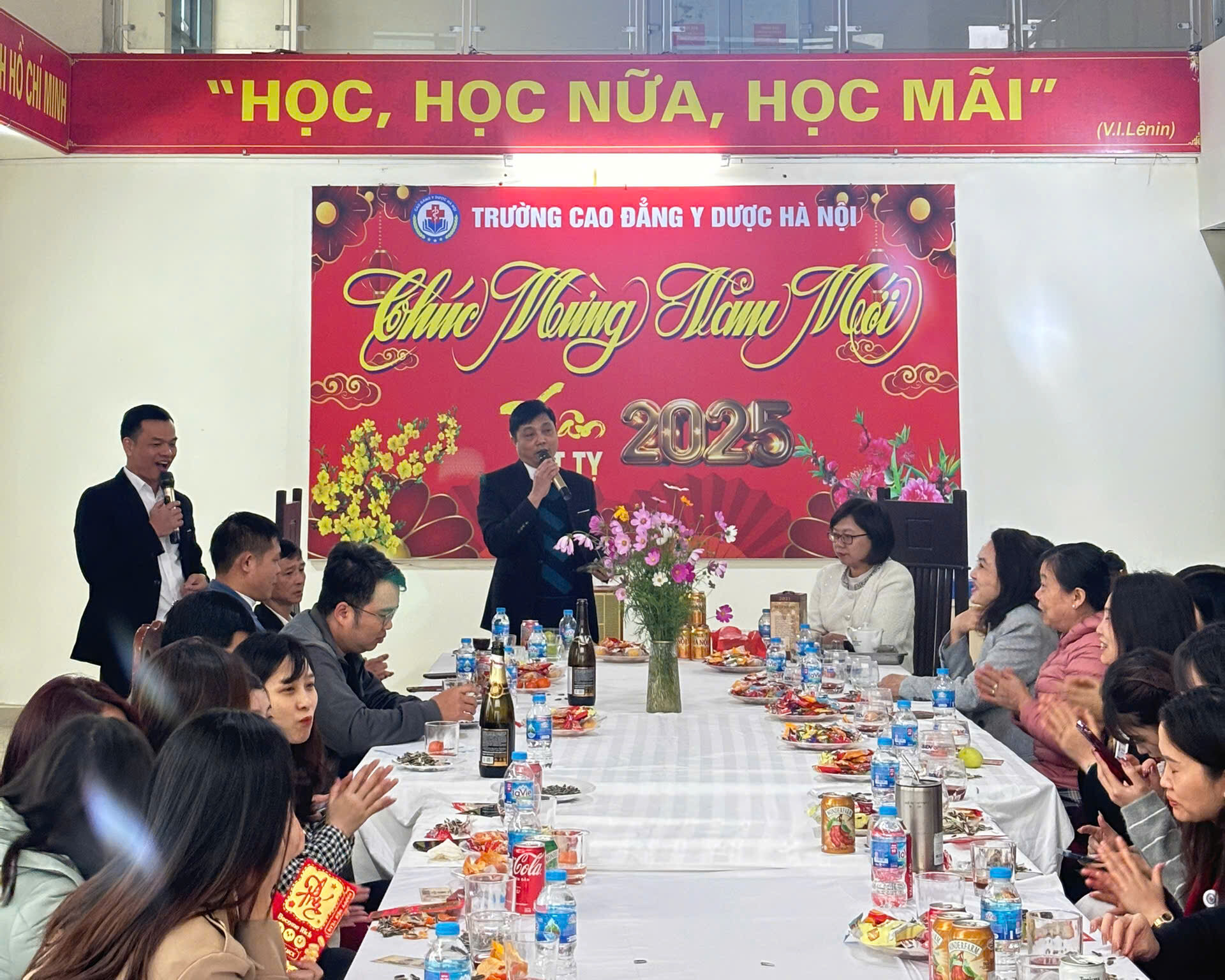 Nhân dịp này, Trường Cao Đẳng Y Dược Hà Nội xin gửi lời chúc mừng năm mới an khang, thịnh vượng đến tất cả thầy cô, sinh viên và gia đình. Hy vọng rằng trong năm mới, chúng ta sẽ tiếp tục gặt hái nhiều thành công, cùng nhau vươn tới những tầm cao mới!