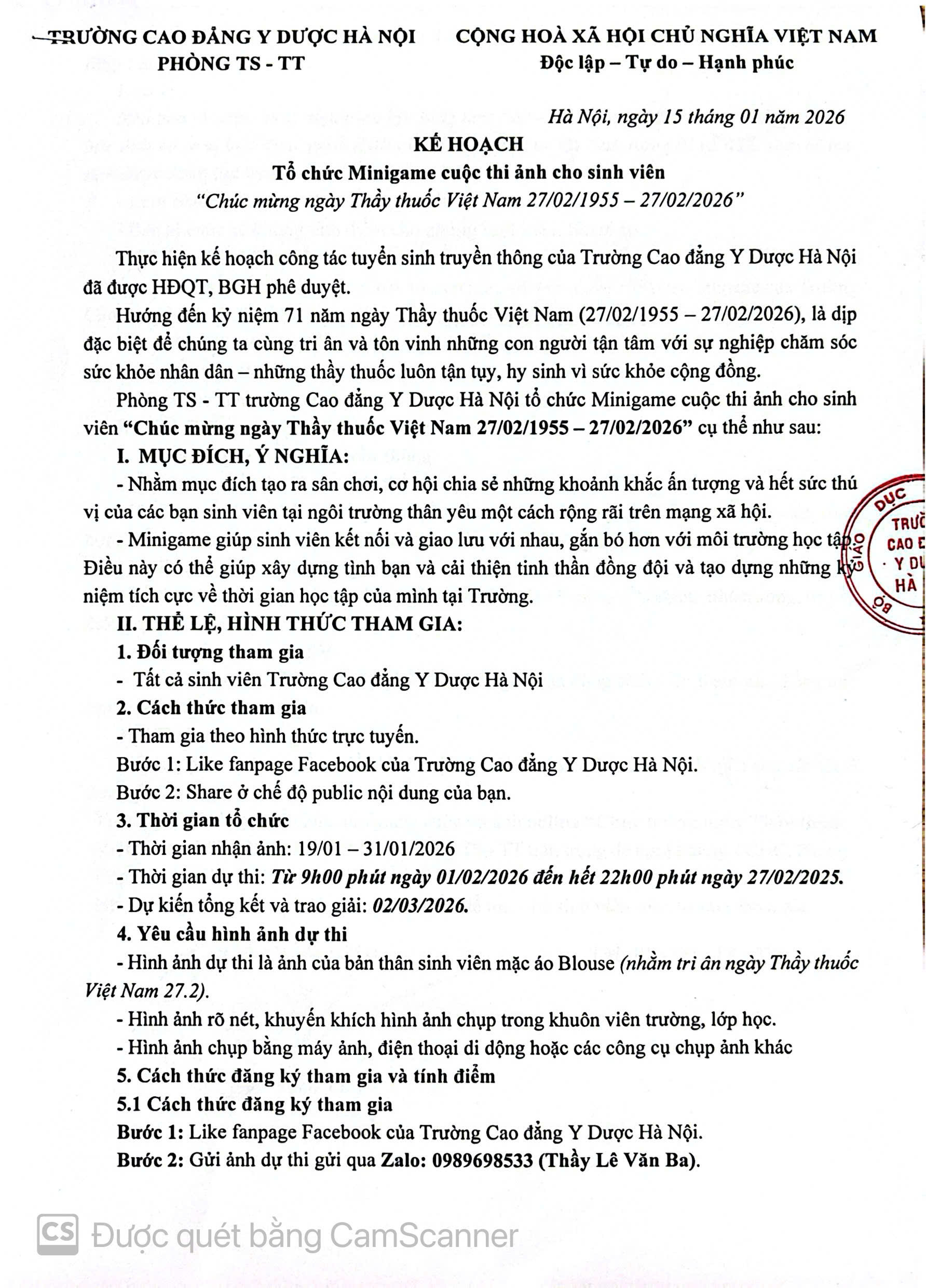 Hướng đến kỷ niệm 71 năm ngày Thầy thuốc Việt Nam (27/02) là dịp đặc biệt để tri ân và tôn vinh những con người tận tâm với sự nghiệp chăm sóc sức khoẻ dân nhân – những thầy thuốc luôn tận tuỵ, hy sinh vì sức khoẻ cộng đồng.Kế hoạch chi tiết: