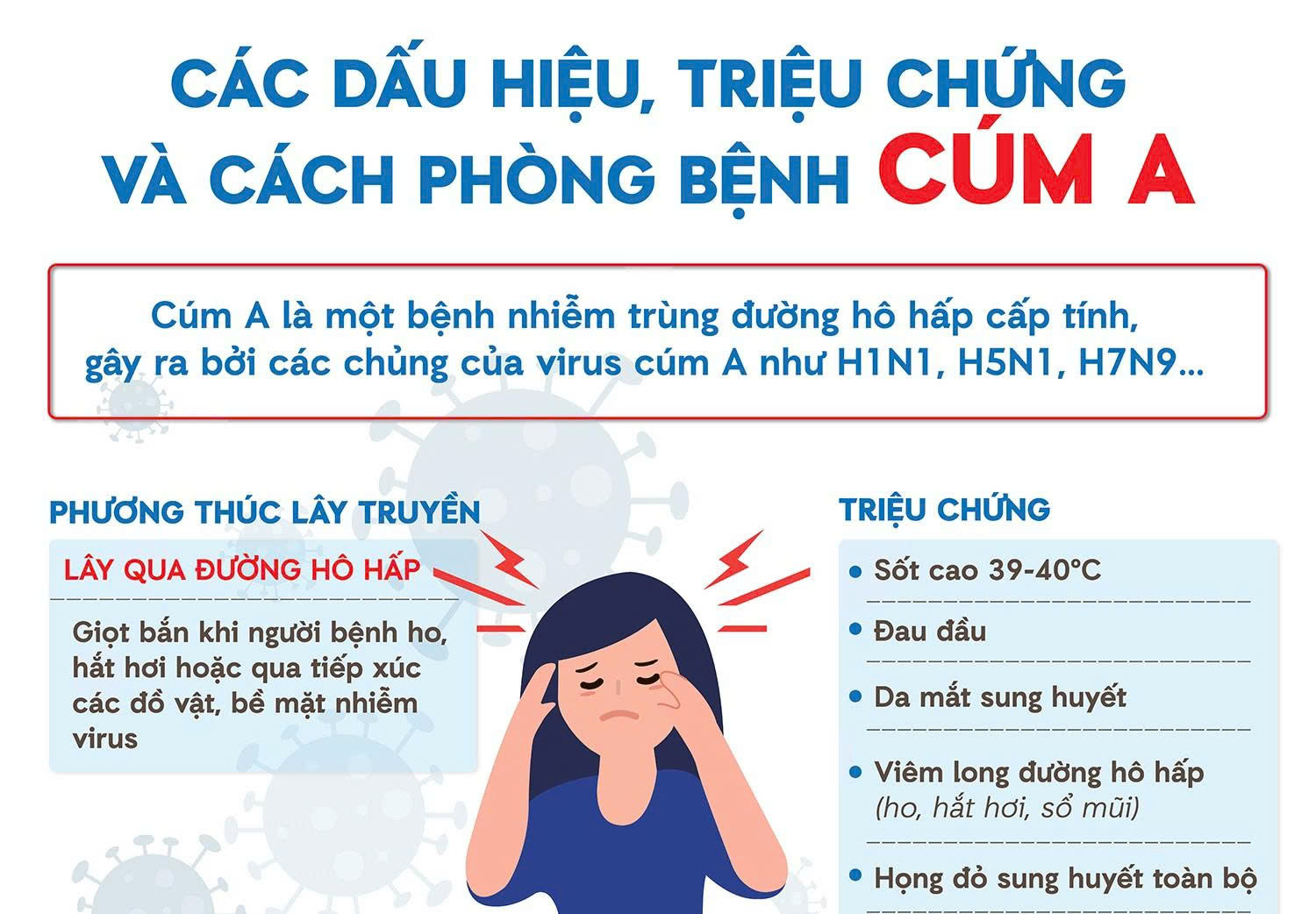 Trong thời gian gần đây, tình hình dịch cúm A đang có dấu hiệu gia tăng, đặc biệt khi thời tiết giao mùa. Để bảo vệ sức khỏe cho bản thân và cộng đồng, hãy thực hiện nghiêm túc các biện pháp phòng tránh cúm A dưới đây: