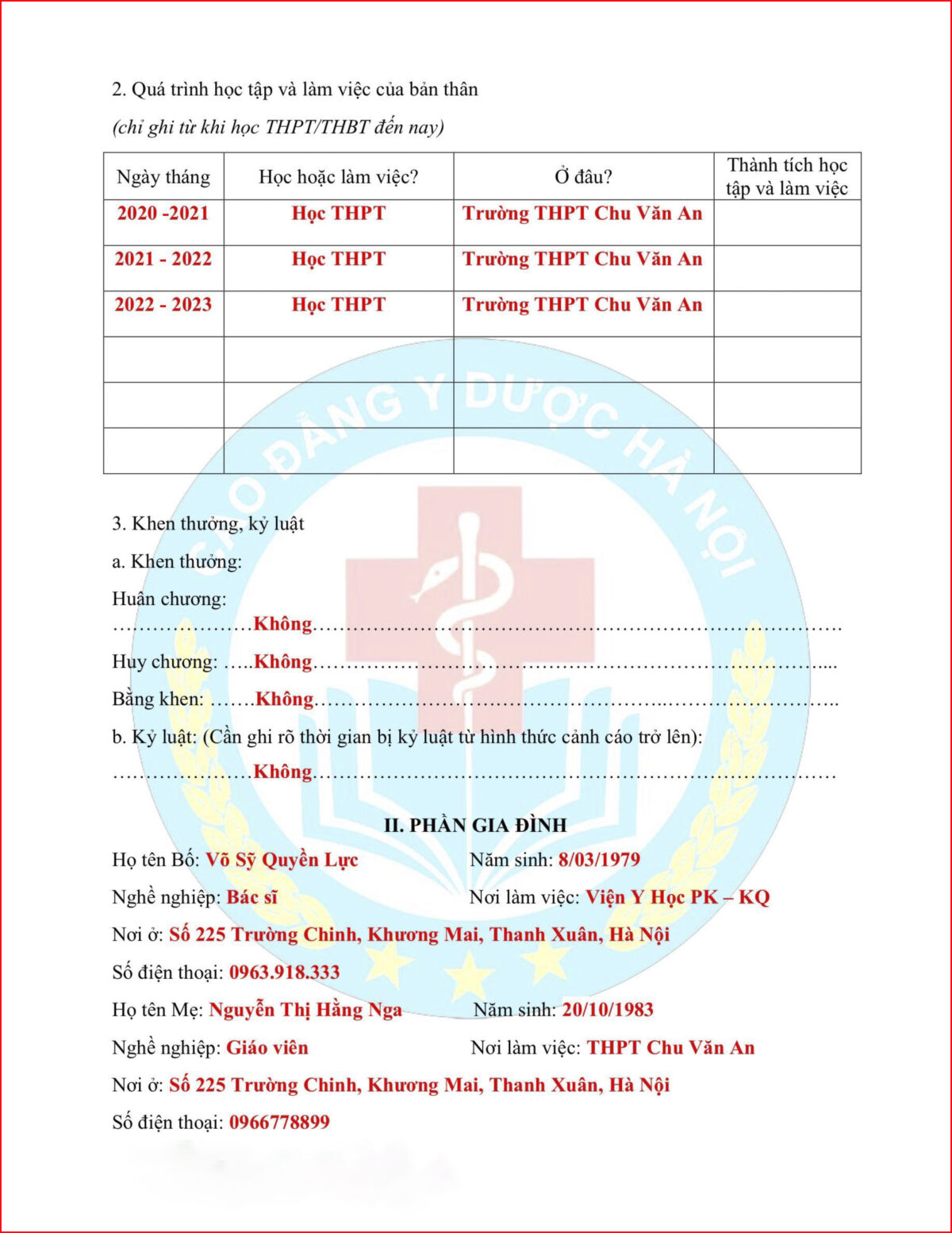 Tải tại đây:  Mẫu phiếu tuyển sinh chuẩn của trường Cao đẳng Y Dược Hà Nội